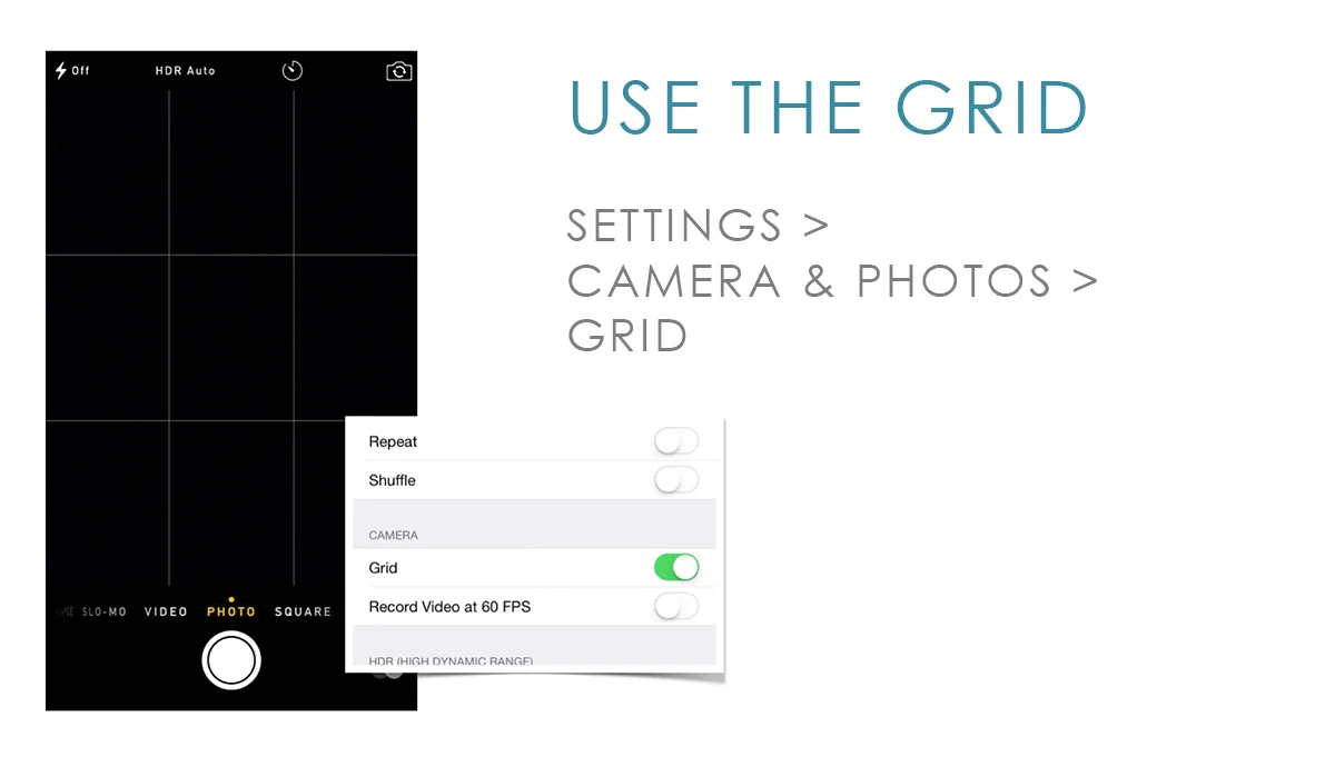 Open the Settings app in iOS. If you are using earlier than OS7 follow these. To turn on the iPhones camera grid.